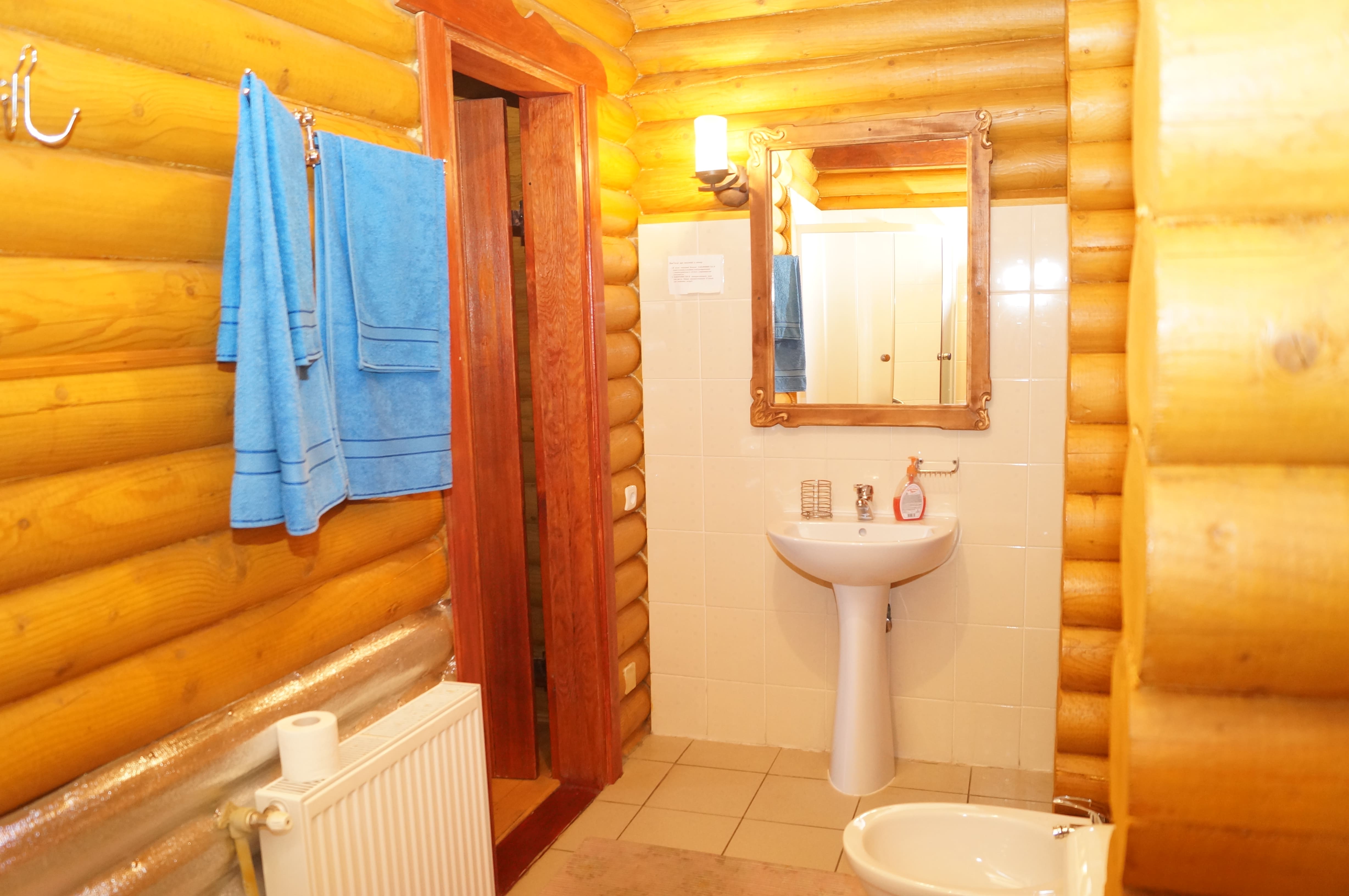 Так, кухня укомплектована набором посуду та приборів з розрахунку на 10 осіб. Також є великі каструлі та сковорідки для приготування їжі.