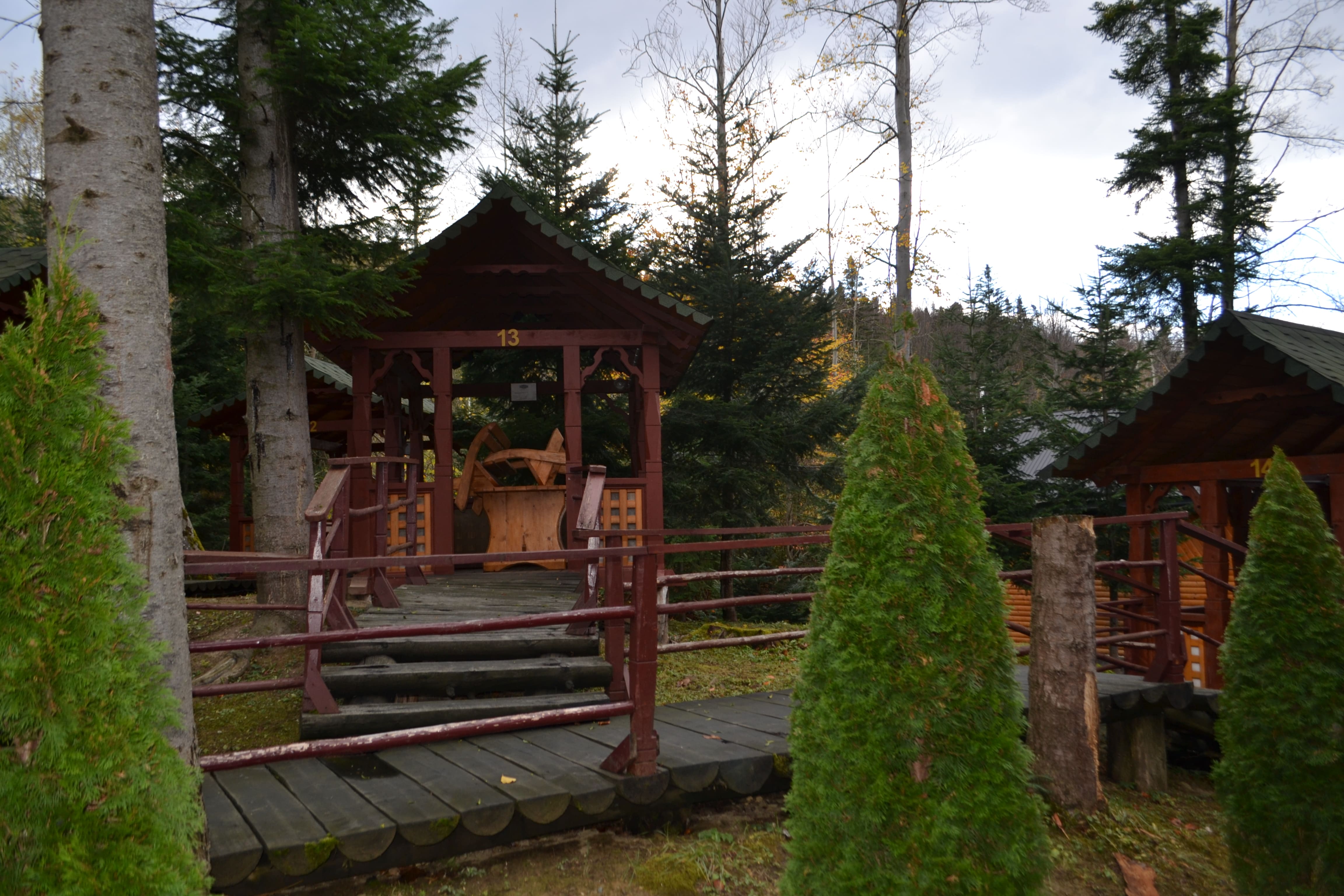 Дерев'яні котеджі-зруби для тих, хто хоче відчути справжній карпатський колорит. Сауна на дровах та гарячі чани поруч створюють незабутню атмосферу релаксу.